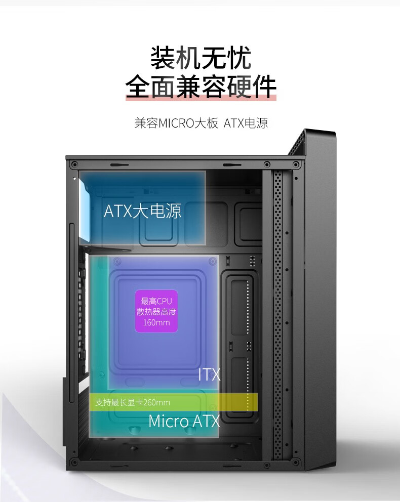 ZUOOS办公家用手提电脑主机箱台式机小主板matx迷你小机箱